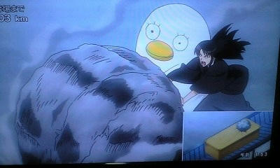 神楽ちゃんに向かって飛んできた大岩を坂田さんが一刀両断。