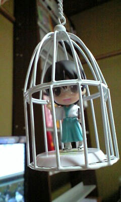 ミニプラントとかを入れるケージに、可愛いかと思って新ちゃんを入れてみたんですが……微妙だろうか;