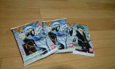あったら買いたいと思い続けて一度も遭遇したことのなかった幻の(笑)銀魂ウエハースが初めて置いてあったので買いました(夏商品だし、絶対どっかの過剰在庫処理だよなー:笑)